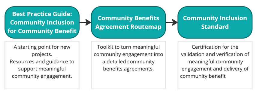 - Certification for the validation and verification of meaningful community engagement and delivery of community benefit.