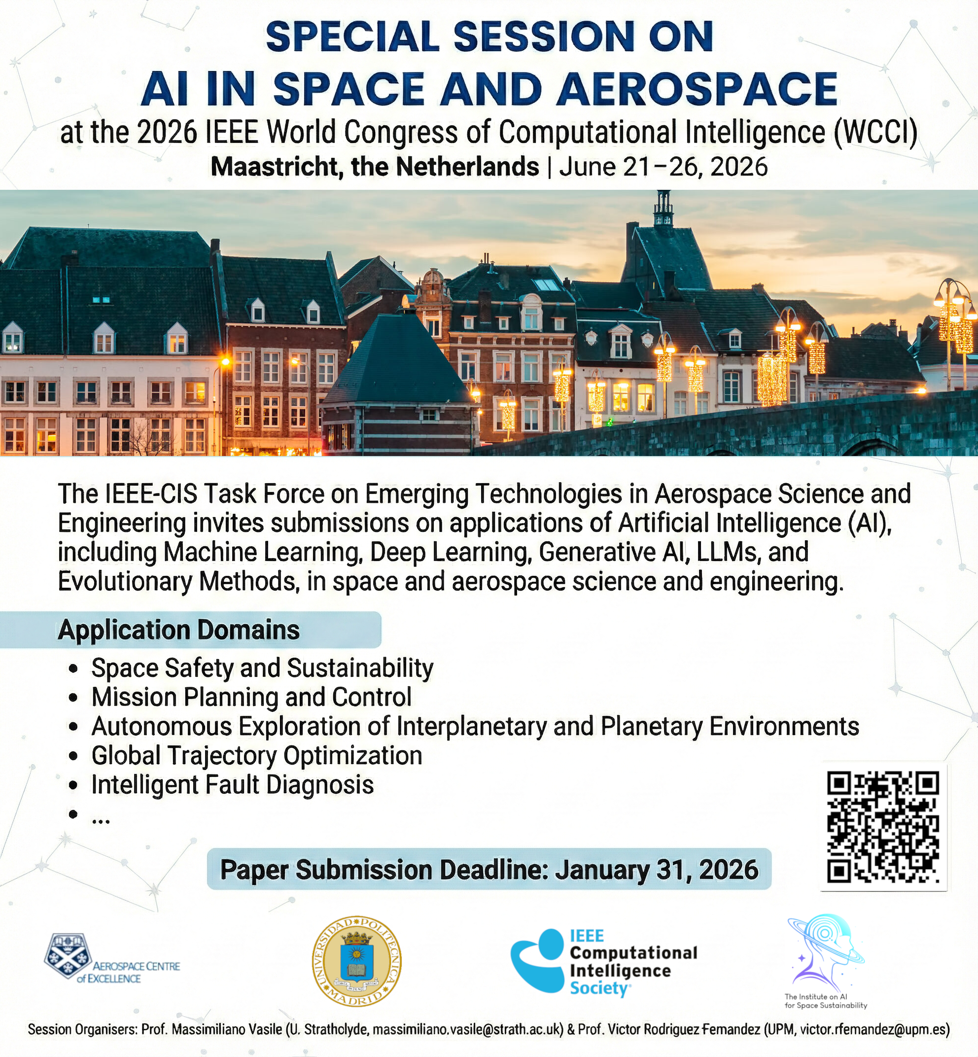 All this is particularly true in space and aerospace where complex systems need to operate optimally often in harsh and inhospitable environment with high level of reliability. In Space and Aerospace Sciences, many applications require the solution of global single and/or multi-objective optimization problems, including mixed variables, multi-modal and non-differentiable quantities. From global trajectory optimization to multidisciplinary aircraft and spacecraft design, from planning and scheduling for autonomous vehicles to the synthesis of robust controllers for airplanes or satellites, computational intelligence (CI) techniques have become an important – and in many cases inevitable – tool for tackling these kinds of problems, providing useful and non-intuitive solutions. Not only have Aerospace Sciences paved the way for the ubiquitous application of computational intelligence, but moreover, they have also led to the development of new approaches and methods.
