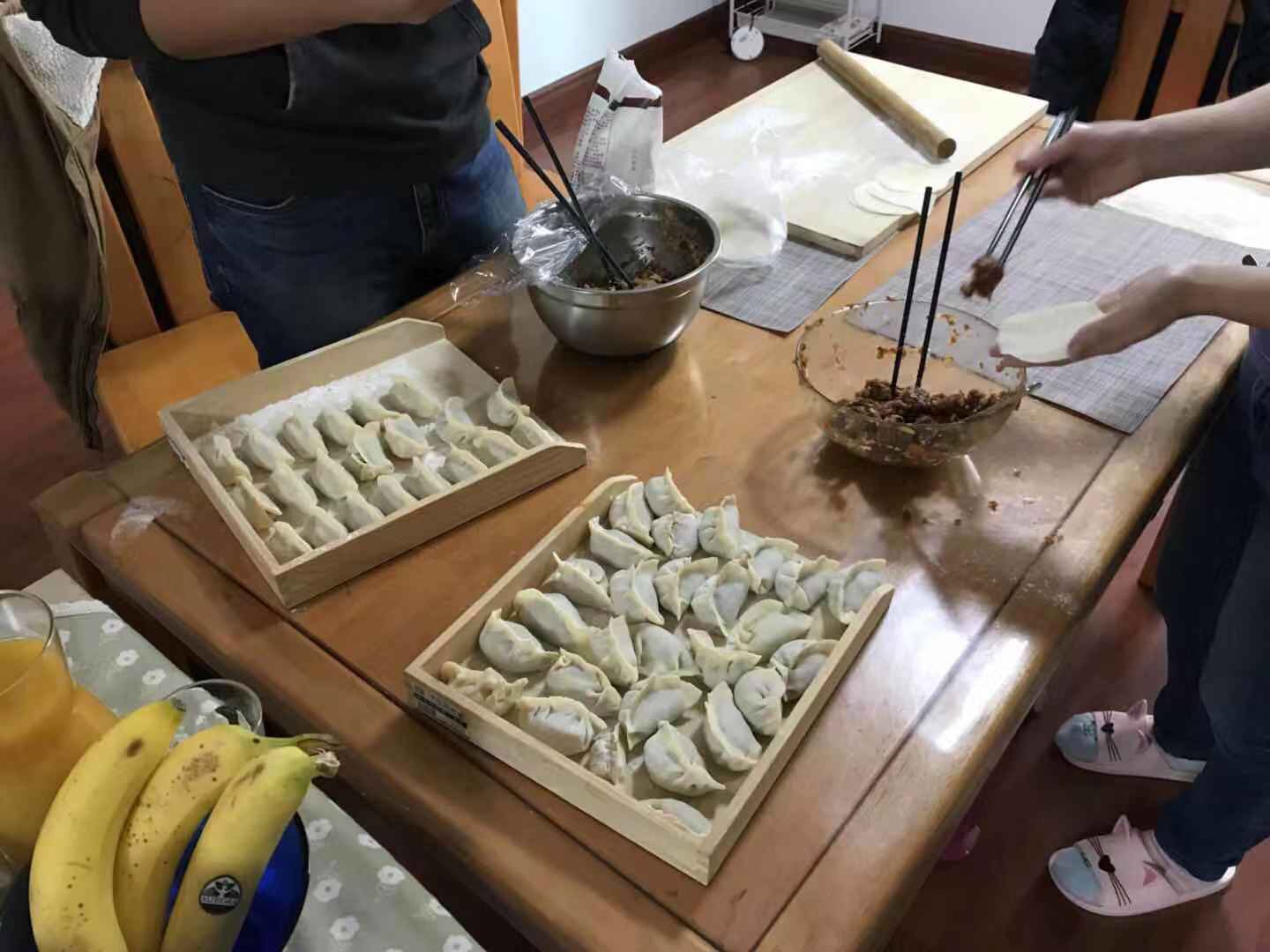While at their home we played chess with their 7 year old son to which we were very proud to say we won and made homemade dumplings.