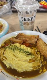 There are three canteens on campus: 一 (yī — meaning one),二 (èr — meaning two) and Halal (which, as you can guess, serves Halal food). One of the canteens, the second canteen, is right next to our dorms and so naturally is the canteen most frequented by us. The canteen has three floors with something like 五十 (wǔshí — 50) different stalls. The main kinds of food served are, unsurprisingly, rice and noodle dishes, our favourites of such being the wondrous chicken katsu curry and wide noodles with egg and tomato; though aside from that there is quite a bit of lovely fried chicken – including a 很好吃鸡肉汉堡包地方 (hěn hǎochī jīòu hànbǎobāo dìfang — really tasty chicken burger place) –, lovely wanton soup, 饺子 (jiǎozi — dumplings) and more!