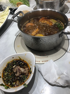 In our two and a bit months here we maybe should’ve been to more traditional Chinese restaurants, and we definitely have plans to — for instance, we’ve been planning to go to a Cantonese restaurant for a little bit —; but that said, we’ve still been to a few. The most common type has been hot pot as it’s very easy to get a lot of people in and be seated together. It’s a great chance to socialise and eat some good food, but we do think that hotpot in general is a little overrated. The food is not so filling, at least in our experience, and it can be a little costly (well, that is with reference to Chinese prices, so still extraordinarily cheap with respect to UK prices). We also think that there is a superior alternative that still has the same sort of experience: barbecue. The food is a similar price, but the meat cooks better on the grill and is usually marinated, which the hotpot meat doesn’t seem to be; additionally, their sides are divine (as our good friend 先生工 (xiānsheng Gōng — meaning Mr. Gong, otherwise known as Andrew, among other things) and his eggs will attest too) no the food in general is more substantial.