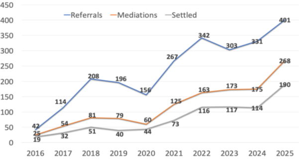 - More cases are referred to mediation and settle