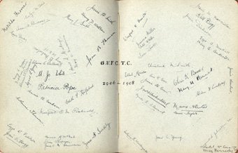 Pages of autographs of contributors to the albumGraphically illustrated, this visually appealing source will not only be of interest to former staff and students of the college and its successor, Jordanhill College of Education (now part of the Faculty of Humanities and Social Sciences of the University of Strathclyde), but equally to anyone interested in student life immediately prior to the outbreak of the Great War. If you recognise any of the images from the album, we would be delighted to hear from you.