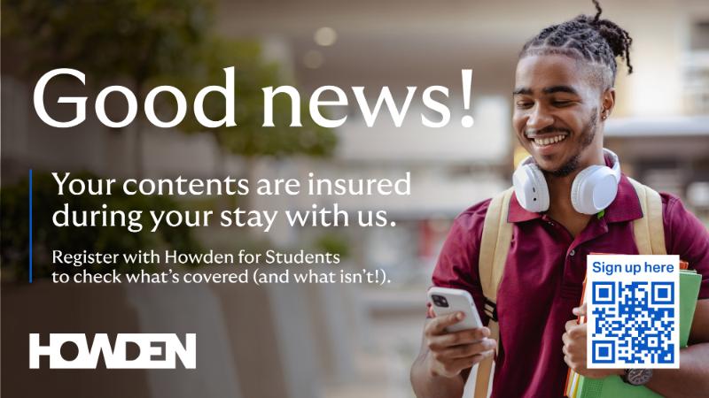 Your contents are insured! Don’t forget to register with Howden for Students to access your cover.