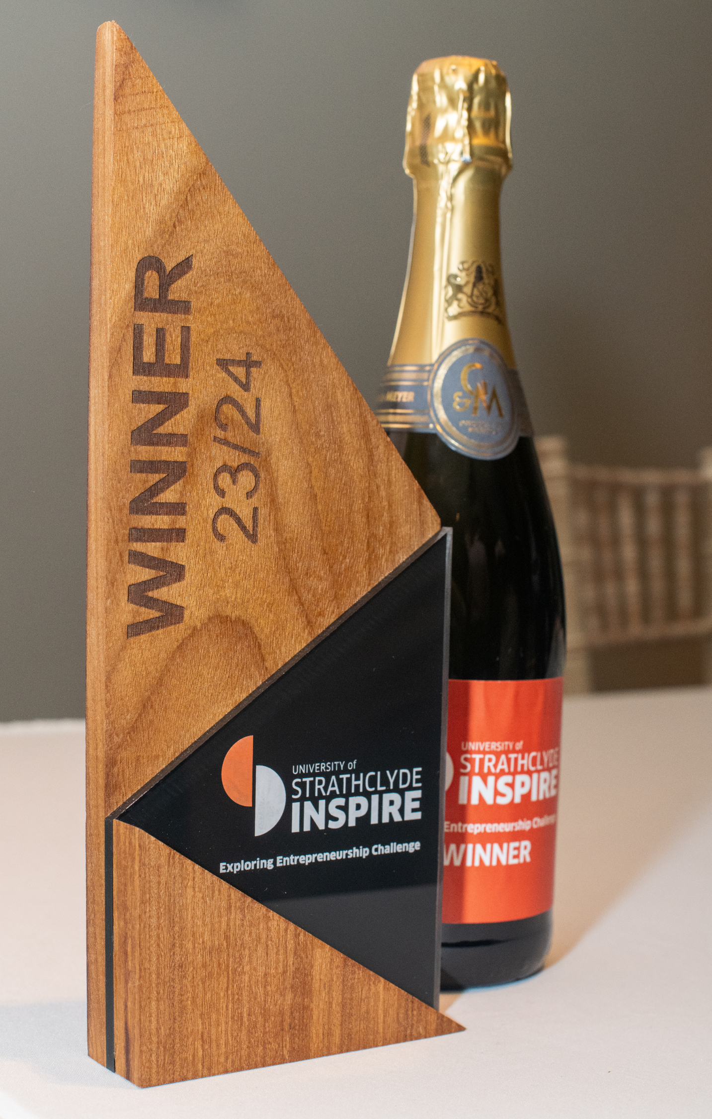 How fitting that StrathEssential’s winning idea is to create a circular economy at Strathclyde, supporting students to buy and sell educational resources such as textbooks, labcoats and calculators at reasonable prices, reducing waste and making quality education more affordable and therefore accessible. And that the plaques they received to commemorate their achievement were crafted by University Education Technician Will Noon from old laboratory workbenches.